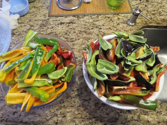 Лишь некоторые созрели, большинство bell peppers еще висят зеленые и вряд ли созреют до холодов. И большнство не белл-ов тоже еще зеленые.