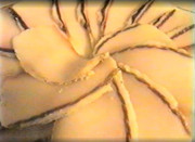 Студень всегда, мимоза и оливье тоже были, курица с чесноком в духовке и с пюре или по-французски свинина (наверное) с луком которая обильно и с майонезом, винегрет, бутерброды со шпротами и чем-то там еще, яйца фаршированные, печень трески с луком, торт медовик и реееедко наполеон - это традиционное новогоднее что-то из детства конца 80х, скорее всего (не могу отчетливо по годам сказать). Особых изысков в середине 90х не было, насколько помню, потому что не купить было это все.