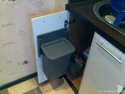 А у нас нет ведра, есть крючок внутри шкафа и пакетик. Туда идёт непищевой мусор, всегда сухо, чисто и не пахнет. Для пищевых отходов измельчитель установлен.