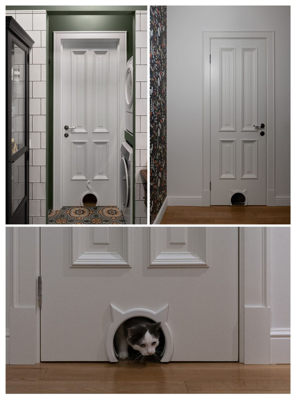 Здесь много кошатниц, может, поделитесь идеями? Собираюсь делать ремонт. В квартире несколько кошек. Дверь в комнату сейчас не закрывается плотно, кошки легко ее поддевают или толкают лапами и открывают, если нужно выйти/войти. Новая дверь, естественно, будет плотно закрываться. Но кошкам нужно свободно ходить туда-сюда, желательно, без моей помощи, чтоб я не подскакивала открыть им или выпустить из комнаты. Думаю сделать дверь со специальным лазом-окошком. У кого-нибудь есть такие? Поделитесь фото, пожалуйста. И где вы это покупали или делали?