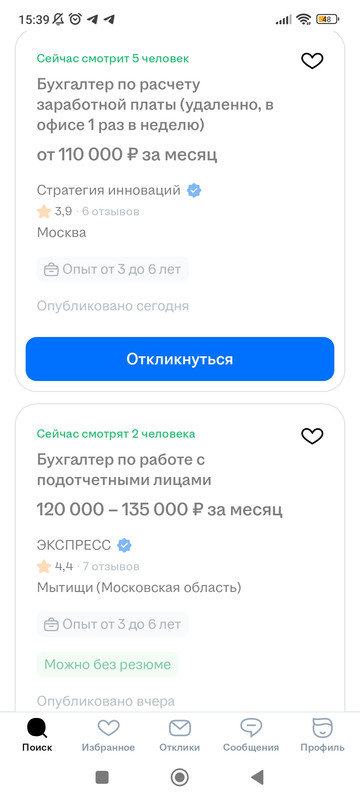 Я бух на участке, ровно год назад искала работу, фильтр установила на 120-130 тыс. На 22 отклика было 20 приглашений на собеседование и 8 офферов по итогу, выбрала 130 тыс. на руки.