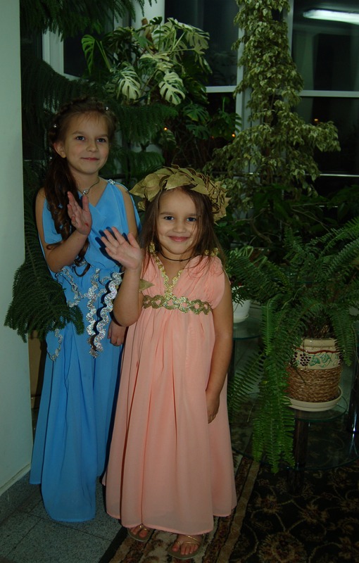 прошли первые утренники, в этом году им шила костюмы греческих богинь, папа мастерил сандали...