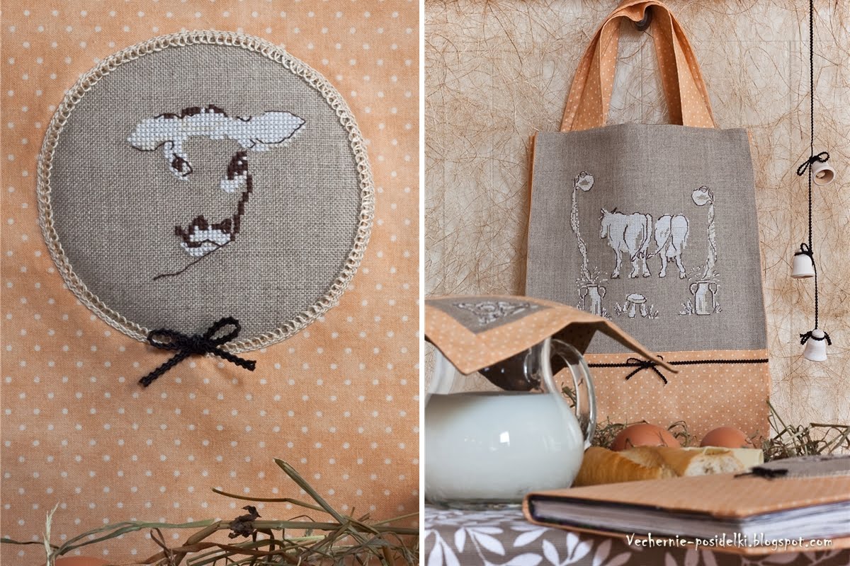 меня переклинило! видела вышивку, очень простенькую, немного цветов в одной гамме и незатейливый сюжет... там как бы овальная рамка, по которой буквы латиницей, MILKчтототам, и из этого овальчика выглядывает симпатичная коровья башка :)...