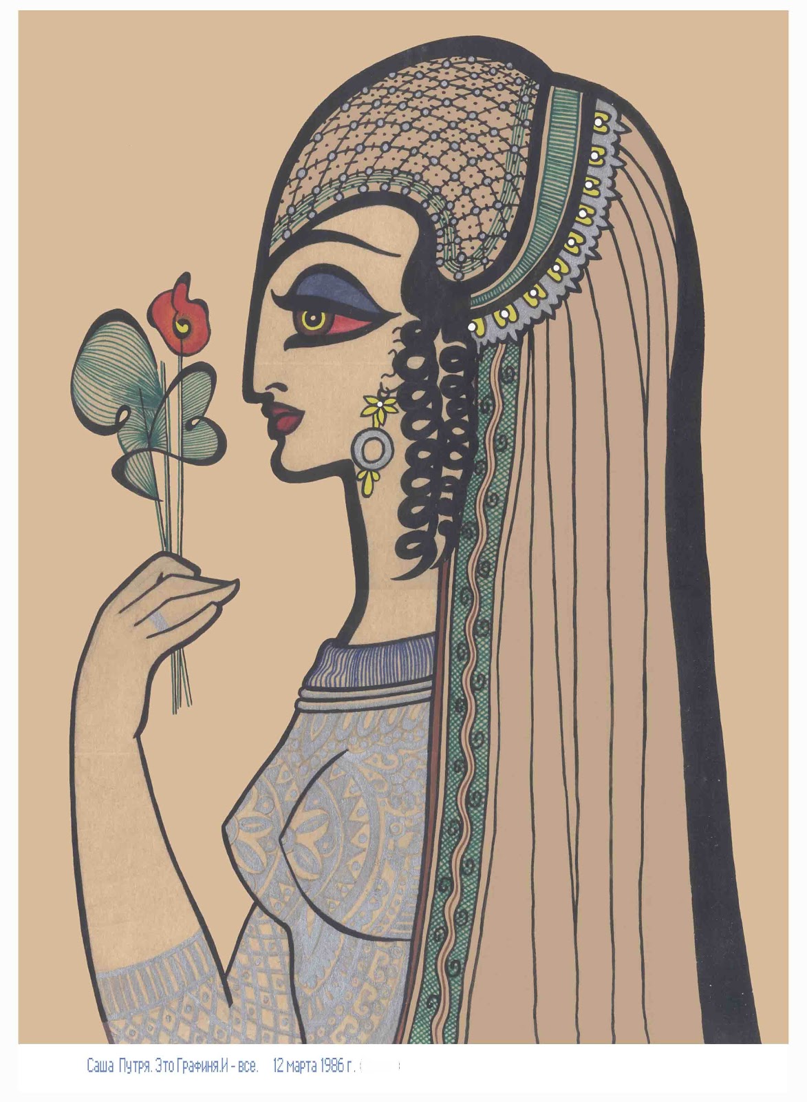 Я полдня это дело срисовывала - не обводила, не копировала через прозрачную бумагу, а смотрела и старалась сделать так же. Сначала карандашом, потом раскрасила.