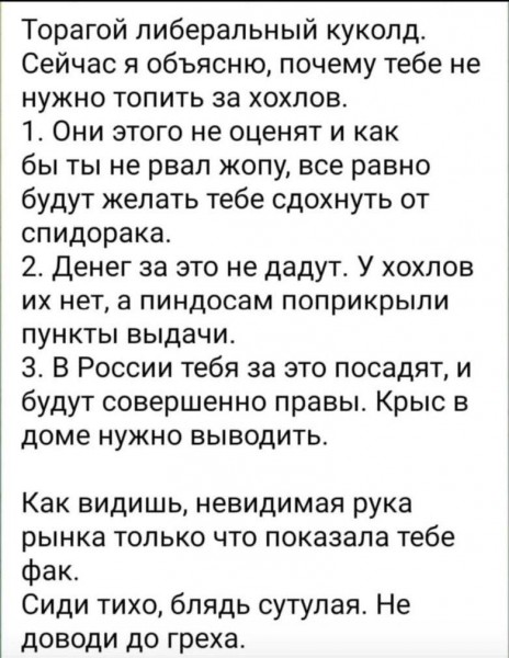Это жители РФ с несовпадающим мнением для них "пятая колонна", которых предлагается если не физически истребить, то куда-то выслать, а подобные перевертыши - подарочек судьбы, их надо холить, лелеять и в идеале поставить какими-нибудь пропаганд..онами, наверное...