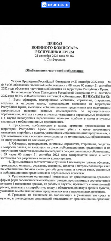 А повесток в военкомат на фоне мобилизации и для нее же не существует, так понимать ваш пост?
