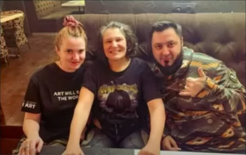 А вот это кто рядом с ней? Да это Аким Апачев, он же Аким Владимирович Гасанов, уроженец Мариуполя. «Лето и арбалеты», если кому знакомо.