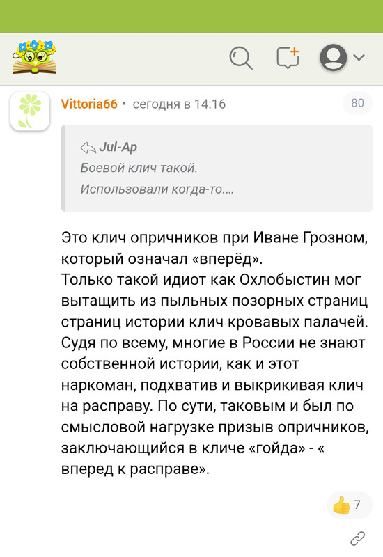 Как вы искусно выдернули сообщение, написанное во втором часу ночи, в заключении целой ветки и защитой старухи в предыдущих сообщениях Принцесс :)