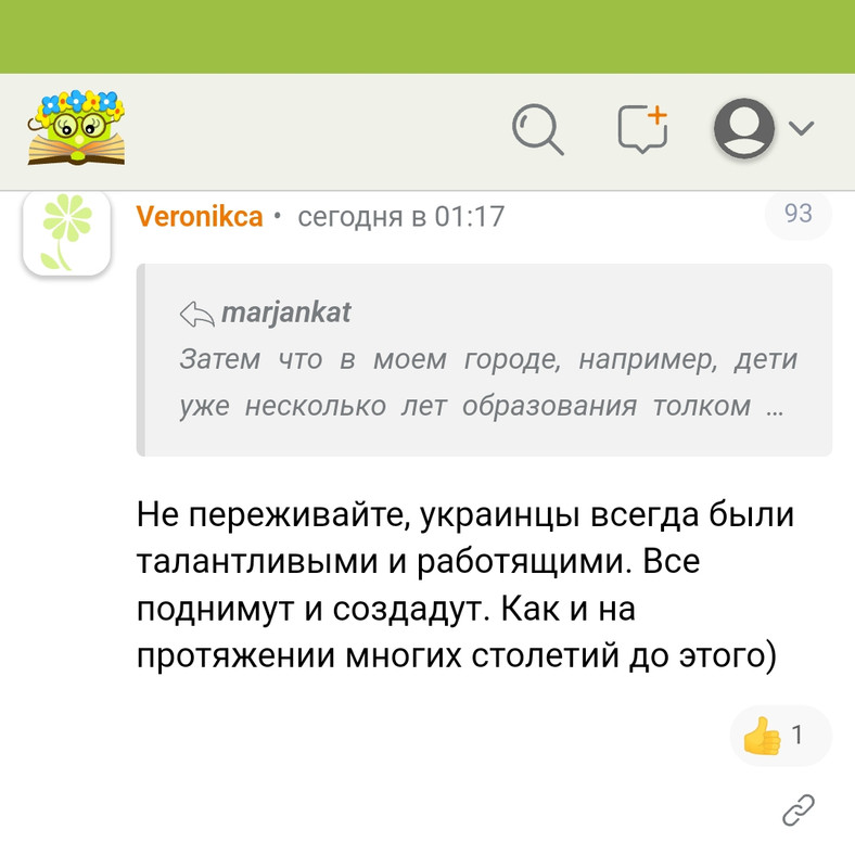 А я отвечала Кате. У меня вес в норме, галушки не ем. Размер один и тот же много лет. И это не хохловброс, а жалость к Кате, прибавившей за время СВО три размера. Нельзя так нервничать.,