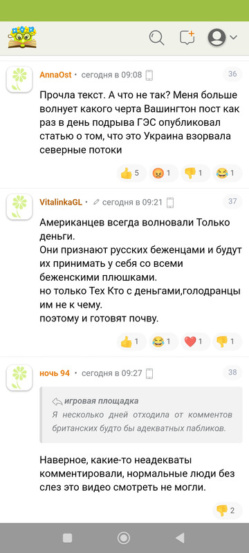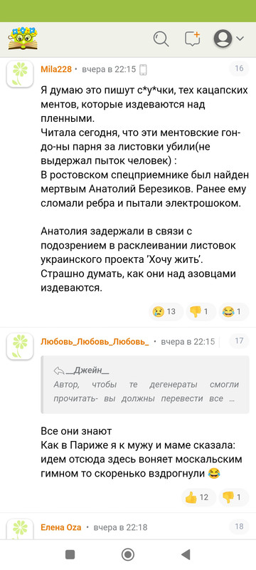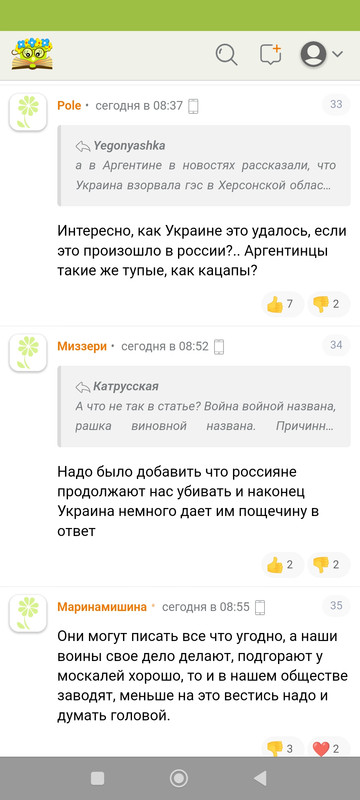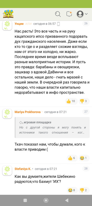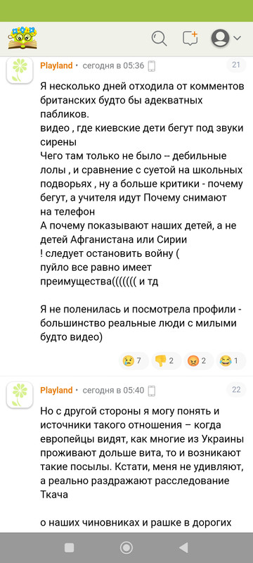 Это неправильные новости. Тем более, что они это наверняка как-то по-своему интерпретируют в свою пользу. Сложно оставаться в адеквате, если у тебя по ночам воздушная тревога или ты в бегах в чужой стране. Что свои говорят, тому и верят, иначе совсем можно с катушек слететь. Там вменяемым вообще не выжить, если всё видеть, всё понимать и продолжать в этой дичи существовать. Может, им так проще. А то рот откроешь, и тебя к столбу с голым задом примотают. В демократических демократиях только так.