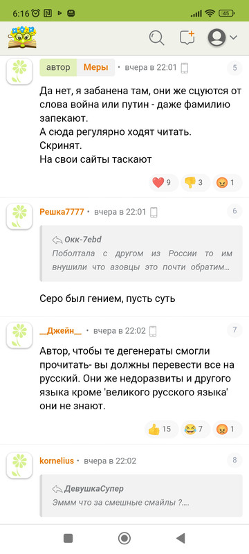 Только полный придурок не может понимать, что если соседу все время гадить на коврик, он может в этот коврик и мордой ткнуть... Но там только заверещали - а нас за що?