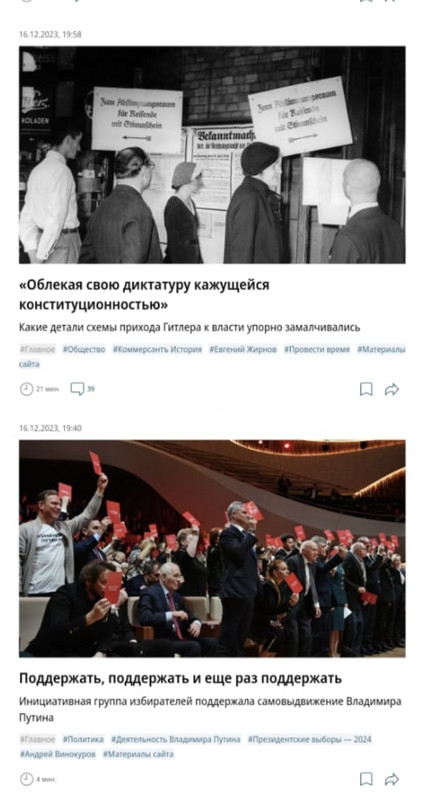 Вы верите в такие совпадения, что в день выдвижения нашего Президента на выборы "Коммерсантъ" выдает такие статьи одновременно с новостью о выдвижении?