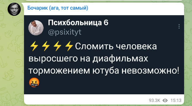 Логика наших властей непонятна: для политики у людей не Ютуб, а Телеграм есть. Ютуб же - для образовательных тем, рецептов, фильмов и прочего развлекательного контента.