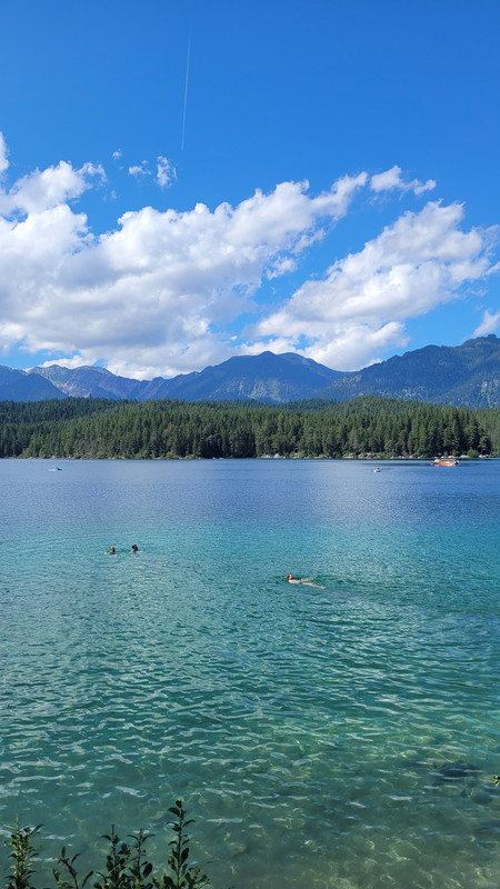 В этом году купались каждый вечер в Подмосковье, с нашей стороны там 2 мостика было, еще один виднелся с противоположного берега.