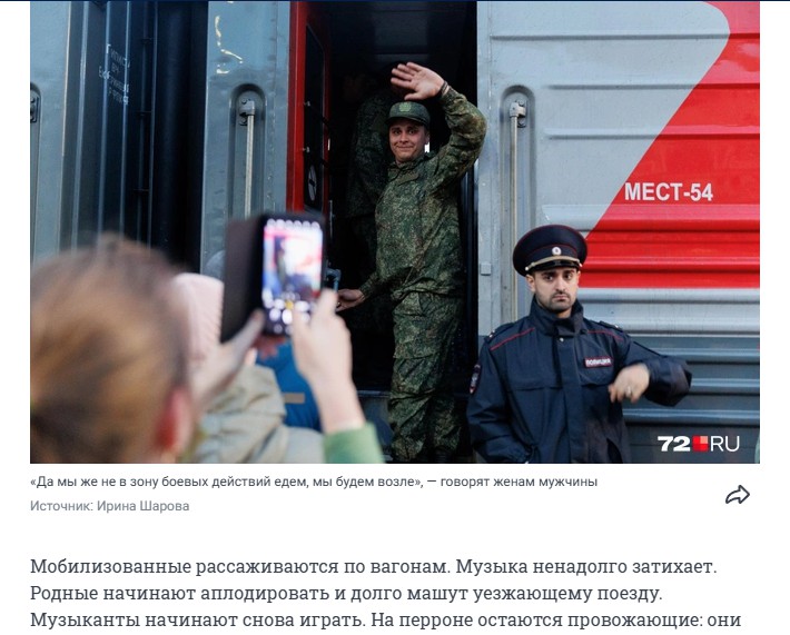 Разговор о другом совсем. Высшее руководство РФ вопрос о начале военных действий с нами не обсуждало, и вопрос окончания военных действий с нами тоже никто не обсуждал. Меж тем мобилизованных лишили права на нормальную жизнь (и тех, кто умеет сложить два и два, такое положение дел устраивать не может).