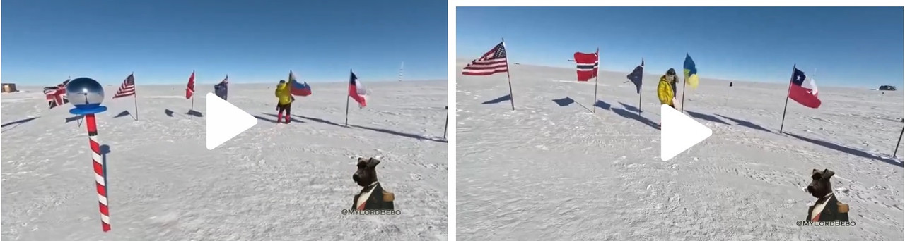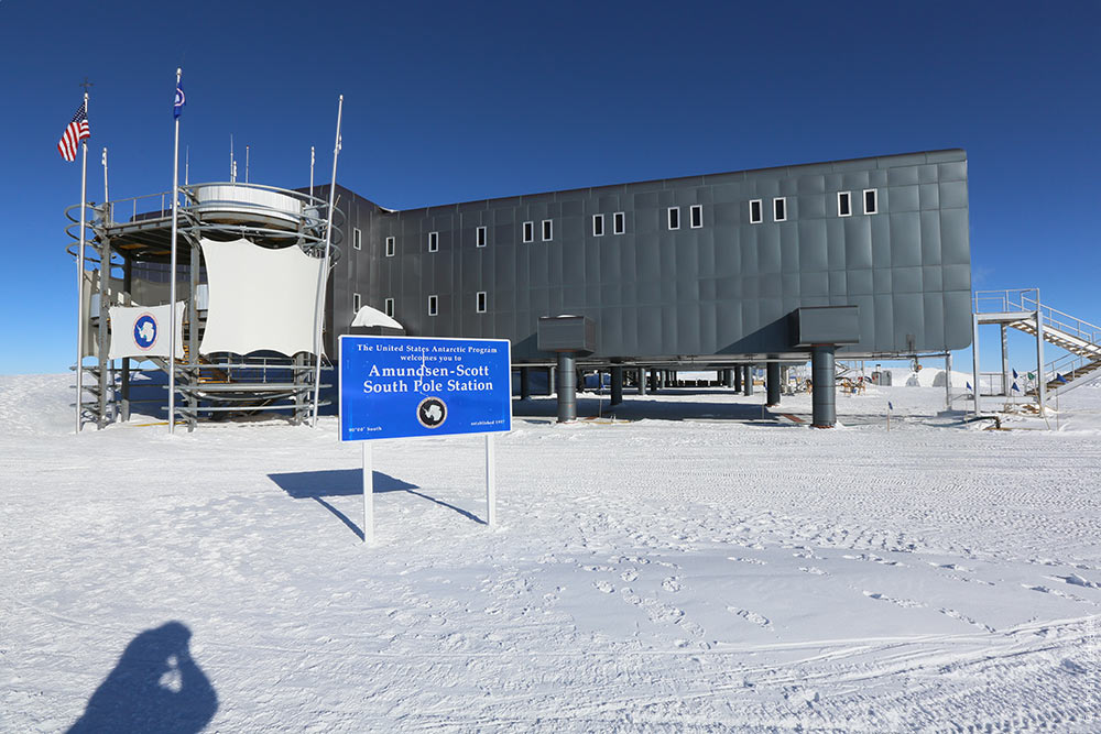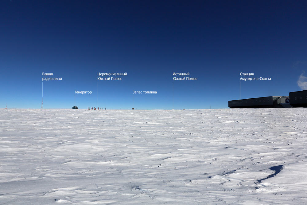 Не любите вы американцев, ну да ладно. От этого барака, который антарктическая станция «Амундсена-Скотта», до «Церемониального Южного полюса», где установлены флаги 12 стран - первых подписантов Договора об Антарктике, предусматривающего демилитаризацию района и использование его в исключительно мирных целях и превращение в зону, свободную от ядерного оружия, метров 150-200.
