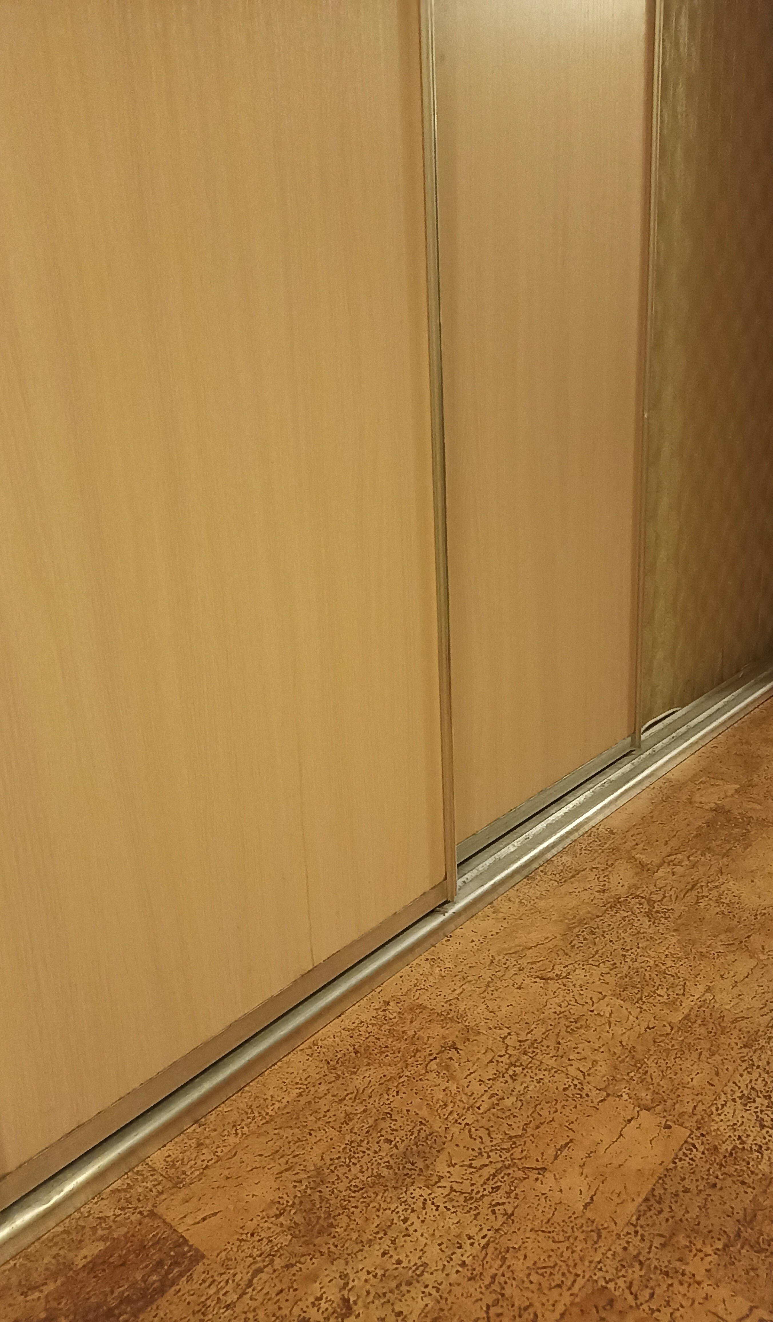 И теперь направляющие и двери, вылезающие из ниши, перекрывают входную дверь, которая расположена перпендикулярно шкафу.