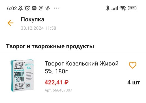 Новая корзина состоит из тех же товаров (проваливалась по ссылкам из старого чека и их же добавляла в корзину в тех же количествах/весе). Соли в чеке нет.