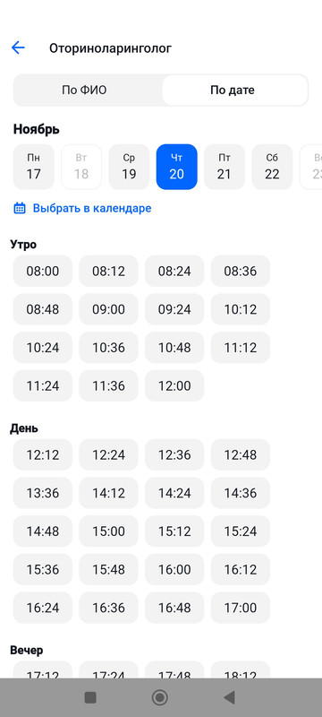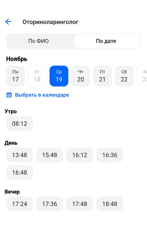 Вот сейчас, воскресенье вечер. Смотрю запись к терапевту - ближайшая вторник. Самое позднее время - 19.48. К гинекологу времени нет (утром посмтрю), хирург - с 20 ноября, есть из чего выбрать. (и утро, и вечер).