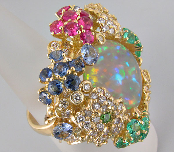 Владелицы таких колец на Еве не сидят. Вам же уже сказали, что кольцо с таким природным камнем будет стоить как немаленькая яхта.