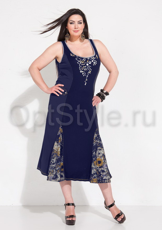 Найти что то с рукавом 3/4 или до локтя. Если она полная, то не стоит оголять руки, трясущиеся жиры не украсят даму. Можно декольте - вытянет шею. Ну и длину по колено.