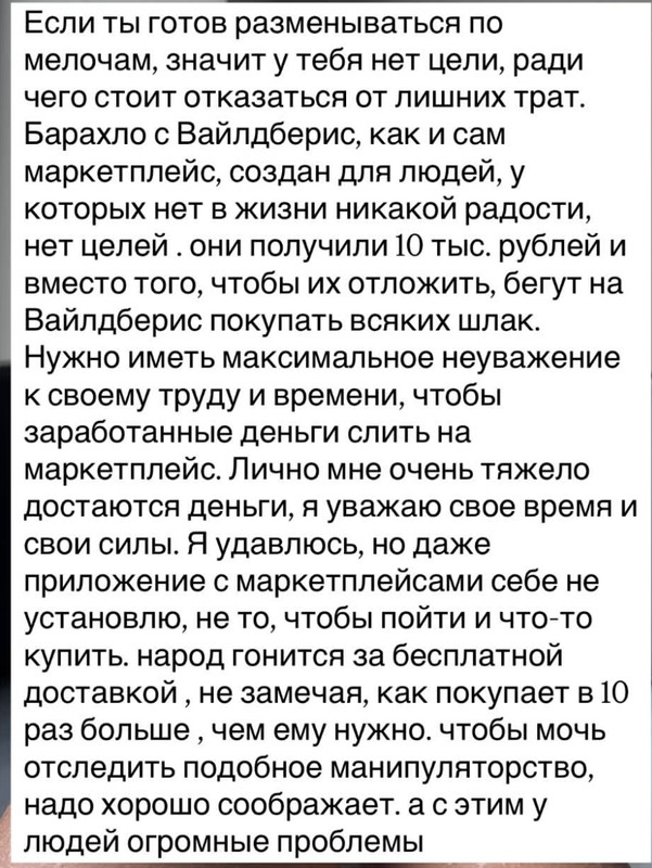 И что)))? А другие скадут, что ВБ-отстой) и)? Есть и Ламода, и сайты магазинов, и Китай)))