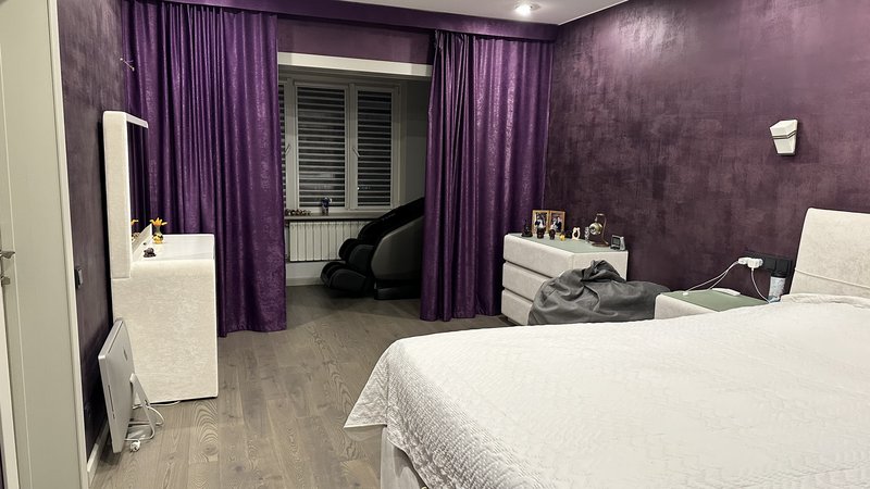 У нас в маленькой спальне две стены фиолетовые, очень хорошо смотрится, обои фактурные под ткань, уютно получилось.