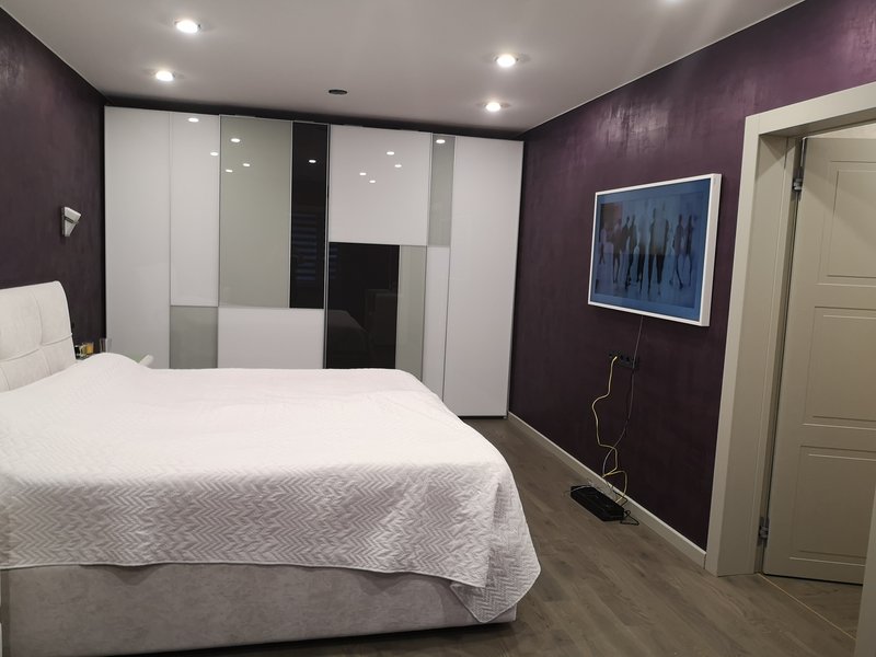 невысокие потолки и спальня не такая уж большая- это снято в специальном разрешении, чтоб охватить как можно больше места.