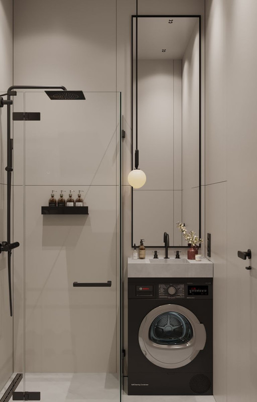 от безысходности только, никаких удобств в этом нет. А эта ванная с душевой кабиной вообще жесть, хотя бы люк стиралки в другу сторону открывался бы... хотя и это не спасло бы(((