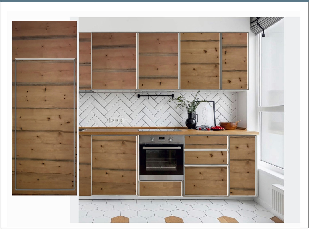 У меня белая матовая, очень простая. Но фартук выложен цементной плиткой, относительно яркой. Добавлены элементы массива дуба. Мне в этой кухне тепло ☺️