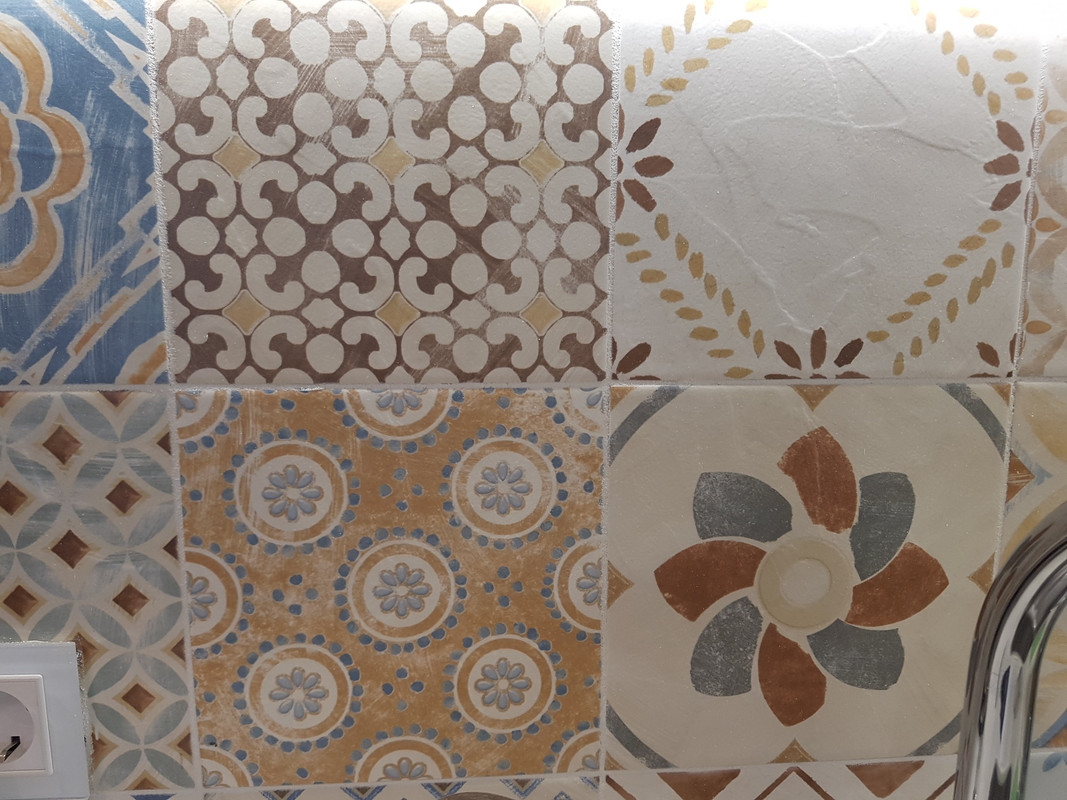 А, а что там тогда со стеной , где разделочная доска лежит и чайник? Внизу как будто облупилась краска?