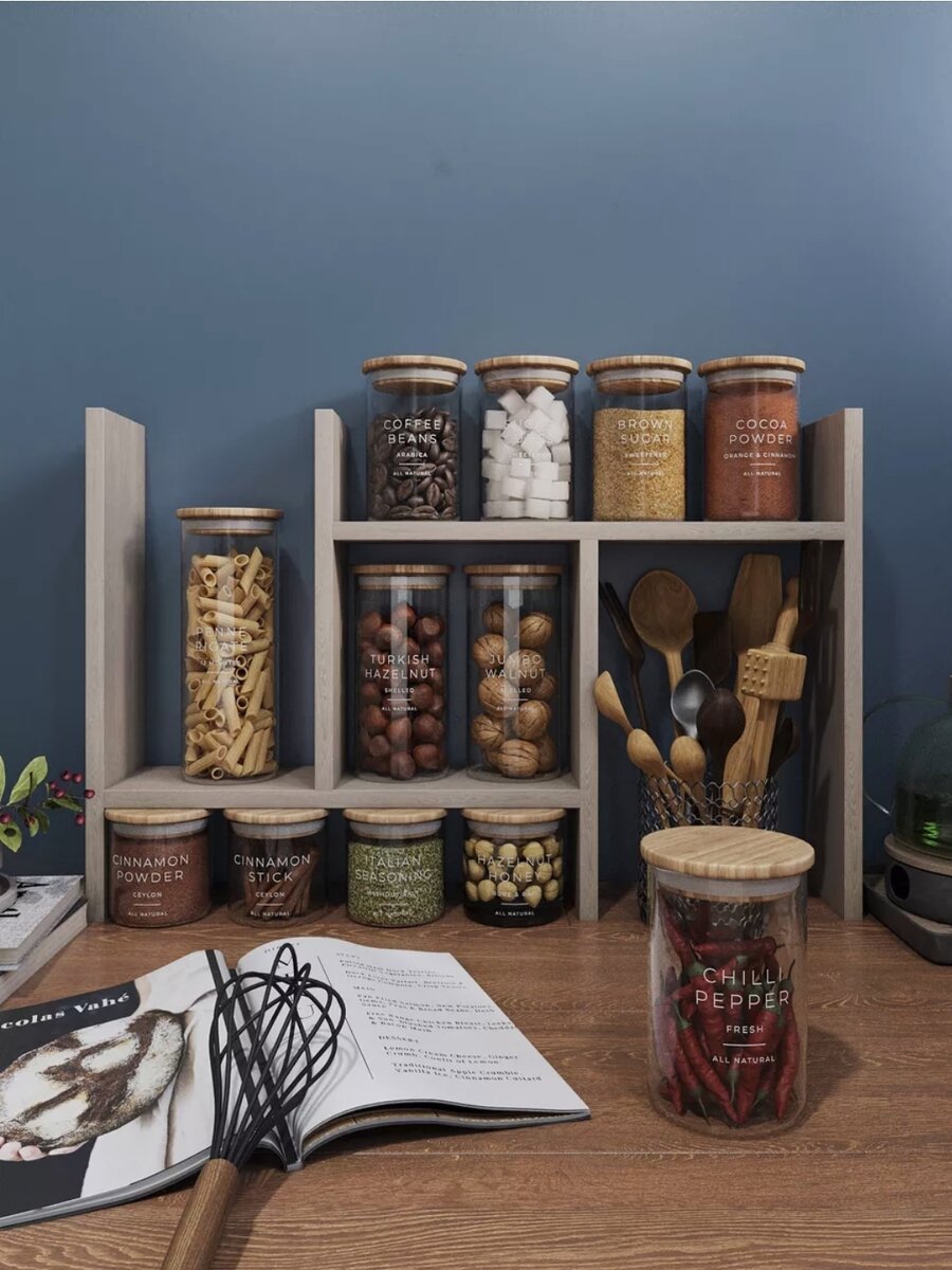 Мне нравится идея стекла, вот как выше предложили сухой гербарий под него, а можно и сухой мох и газеты в конце концов, насколько фантазии хватает ну и плюс какая цветовая гамма кухни
