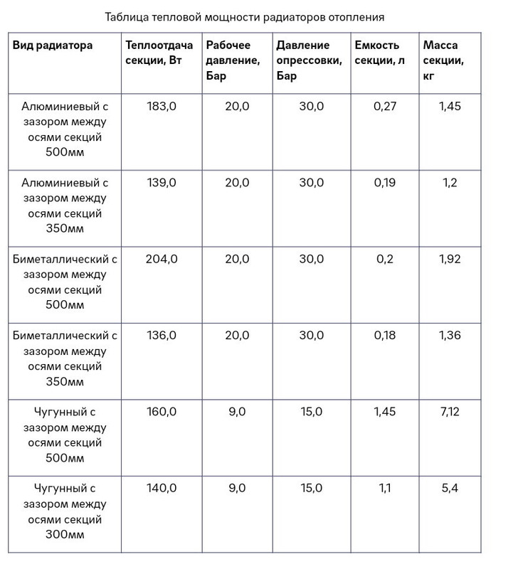 Показатели теплоотдачи радиаторов: