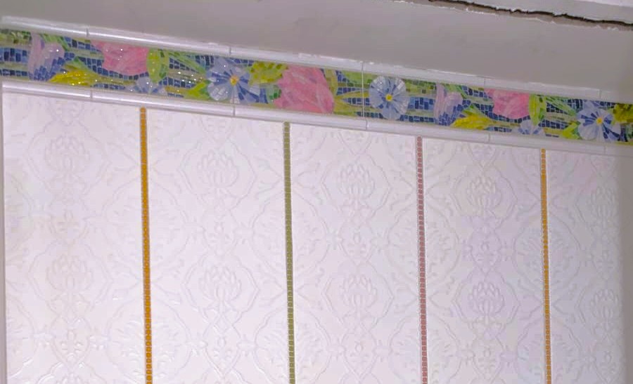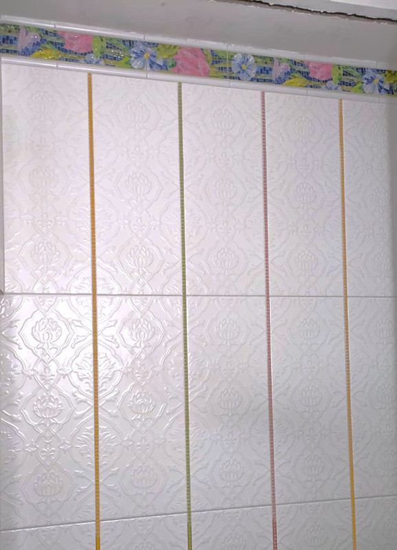 вот кусочек недоклеенных и недокрашенных обоев на фоне недообложенной плиткой ванной ))