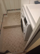 Инга, сейчас увидела ваш туалет на канале... а мне нра... с люстрой антик будет очень мило... но смежный вопрос- а вот в ванной стиральная машинка так задумано под столешницей стоит - выпирает.. или будет задвинута глубже?