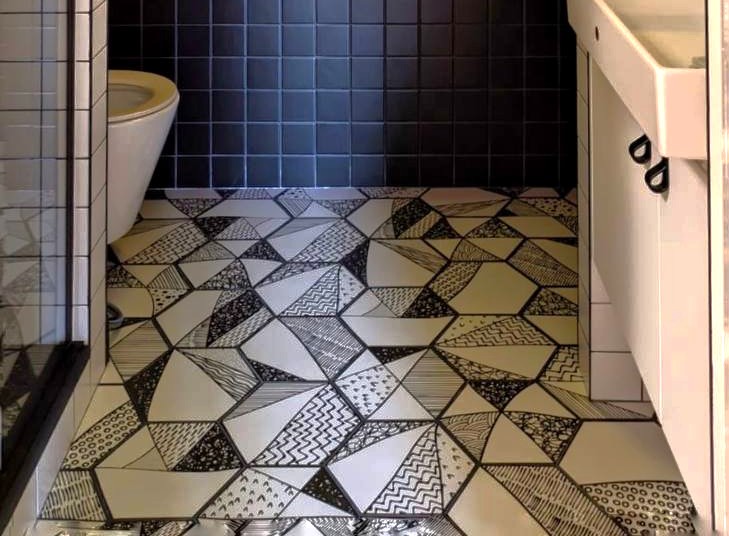 Скреативили, но смотрелось красиво. В той зоне керамогранит и теплый пол. А по краям темно-серая плитка - но выглядело хорошо.