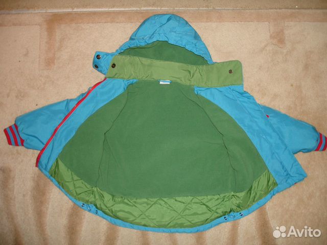Капюшон отстегивается. Внизу - резинки-утяжки. Удлиненная спинка (прикрывает попу)