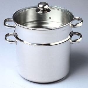 в верхнюю кастрюлю крупу засыпают, в нижнюю мясо с овощами, вот на пару от бульона кус-кус и готовится.