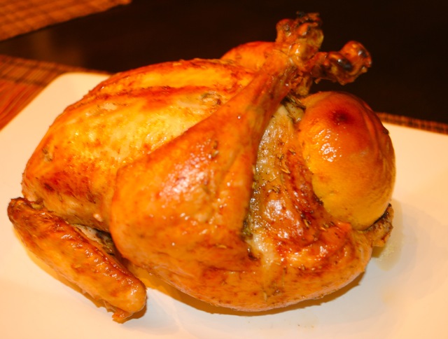 "Наверное, первый вопрос, который у вас возникает - почему курица "обручальная"? Дело в том, что этот простой рецепт курицы, запеченной целиком в духовке с лимоном, розмарином и чесноком, я нашла лет 10 назад в одном американском модном журнале, и там она называлась именно "обручальная курица" ("engagement chicken"). Журналистка клялась, что данное блюдо имеет некое волшебное воздействие на сильный пол, и, если приготовить его для романтического ужина с вашим молодым человеком, предложение руки и сердца последует в течение следующих трех месяцев!