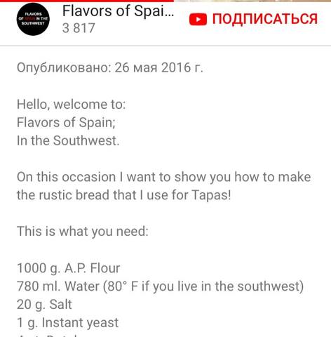 ЗЫ. Русская муку имеет слабую клейковину. Она заведомо слабее, к примеру, немецкой. Поэтому исходя из моего опыта, я всегда кладу меньше муки. чем стоит в русском рецепте. К примеру, там 250 грамм, я делаю замес с 200 граммами, чтобы не забивать мукой тесто. Это пришло с опытом и пониманием. Но я понятия не имею, что из себя представляет испанская мука, и как с ней поступать. Посему лучше я подберу рецепт либо на немецком сайте, либо на русском.