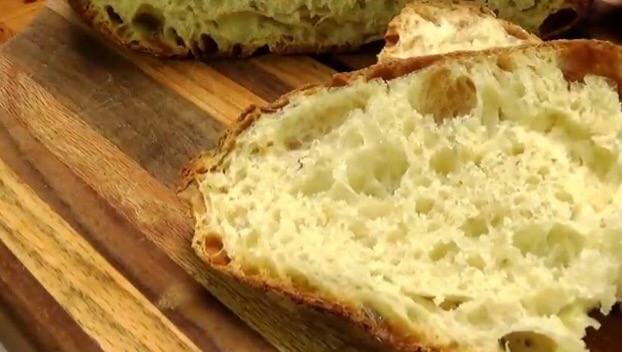 Его не нужно вымешивать, 4 обминки и длительная,12 часовая расстойка,как у чабататты. Тесто такое же,желеобразное и пузырчатое получается.