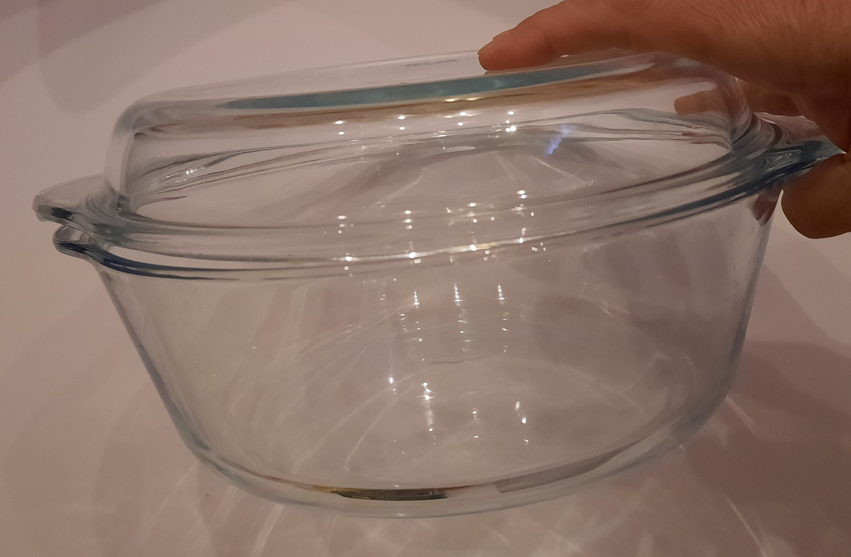 Стеклянная посуда для запекания у меня тоже есть, но она без крышки, - покрываю фольгой. В принципе норм, но отмывать потом ...