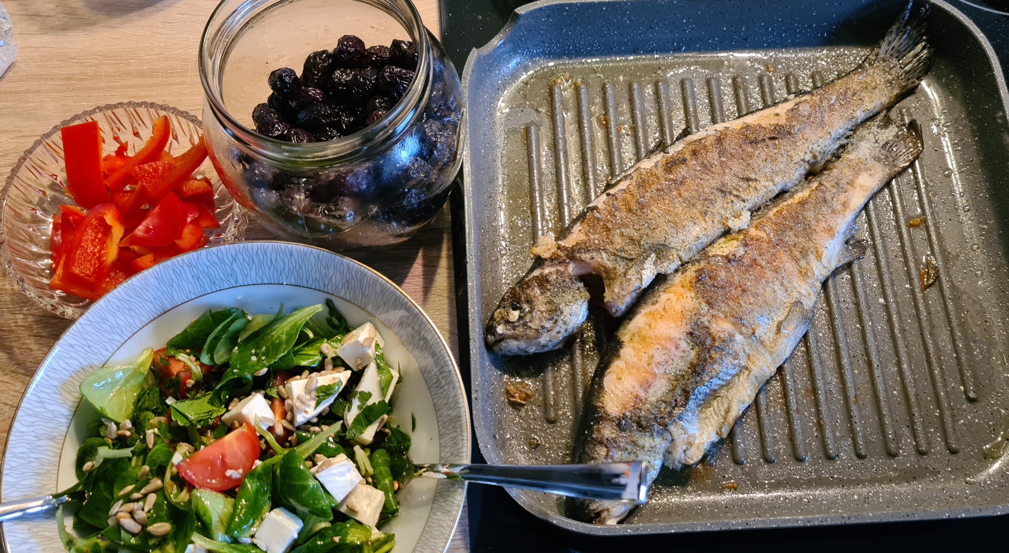 Поражаюсь как все без куска мяса-рыбы на обед-ужин..мои едят две отбивные свиные и салат с двумя огурцами -двумя помидорами.Это старшие их четверо ..малыши по одной дородао с одним огурцом.и трое,я на обед стейк форели(такой крупненький толстенький,не ужинаю)