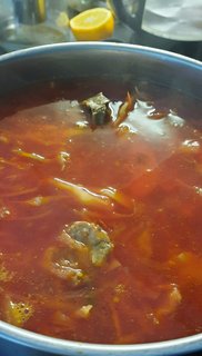 Обед - том-ям в кафешке, офигенно вкусный, кстати если кто рецептом поделится буду благодарна, ужин - стейк говяжий, но я не осилила %-) Муж готовил ...